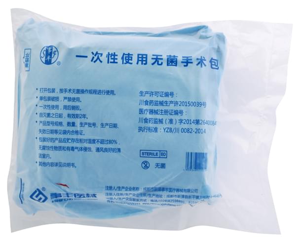 由护理垫、医用单、洞巾、医用外科口罩、手术衣、帽子、袖套、被套、枕套、纱布块、棉球、橡胶外科手套、药碗、药杯、托盘组成。包内配件主要由非织造布、医用脱脂纱布、医用脱脂棉、聚丙烯或聚乙烯制成,经环氧乙烷灭菌,产品无菌。