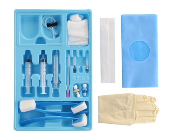 本产品由硬膜外穿刺针、腰椎穿刺针I型、腰椎穿刺针Ⅱ型、神经阻滞穿刺针、药液过滤器、空气过滤器、硬膜外麻醉导管、导管接头、一次性使用无菌注射器、一次性使用无菌注射针、全玻璃注射器、导引针、负压管、消毒液刷、橡胶医用手套、敷料巾、手术巾、脱脂纱布、创可贴、医用胶条组成。