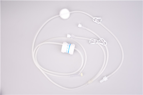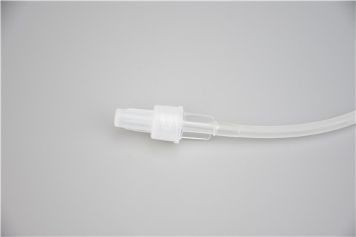 产品使用时与进入人体血管的导管相连,提供药液的输注通路,产品为重力式静脉输注。