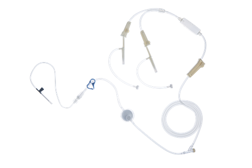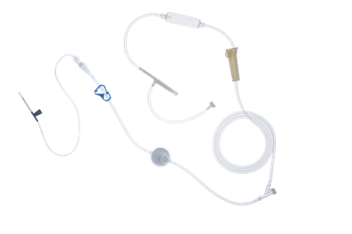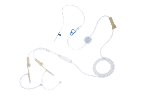 由瓶塞穿刺器保护套、瓶塞穿刺器、进气器件、开关、接头、软管、滴斗、滴管、流量调节器、药液过滤器、注射件、外圆锥接头、静脉输液针和输液贴组成。 环氧乙烷灭菌、无菌、无热原、一次性使用。